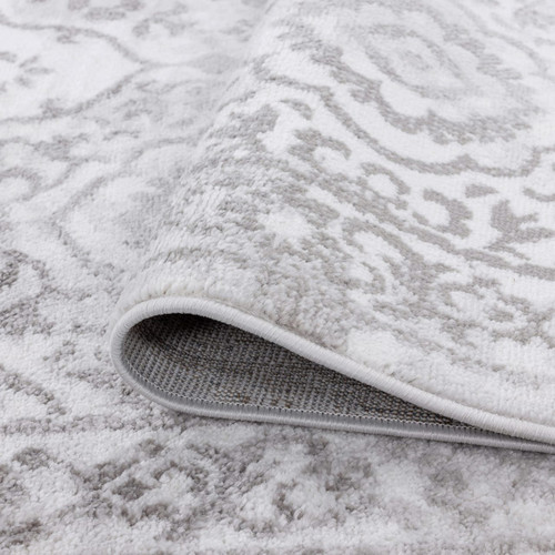 This Jersey Traditional Oriental rug is so nice! The colors go perfectly in my house. It's a light Grey and white. I do wish that the rug was a little thicker. It's very thin and is more decorative than providing cushion. It would also be nice if there was some kind of grip on the bottom so it wasn't so slick on tile flooring. Other than that this is a great rug that looks nice!